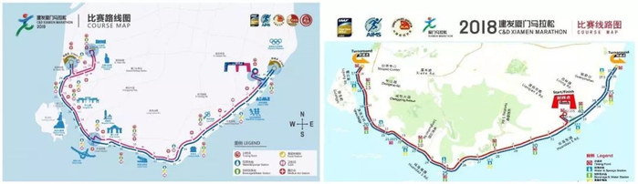 2020年厦门马拉松赛事路线图,由厦马组委会与厦门市测绘与基础地理信息中心联合绘制。起终点仍设在厦门国际会展中心,没有实现之前网传的环岛,但对比2019、2018年路线图,线路越来越多延伸至岛内。