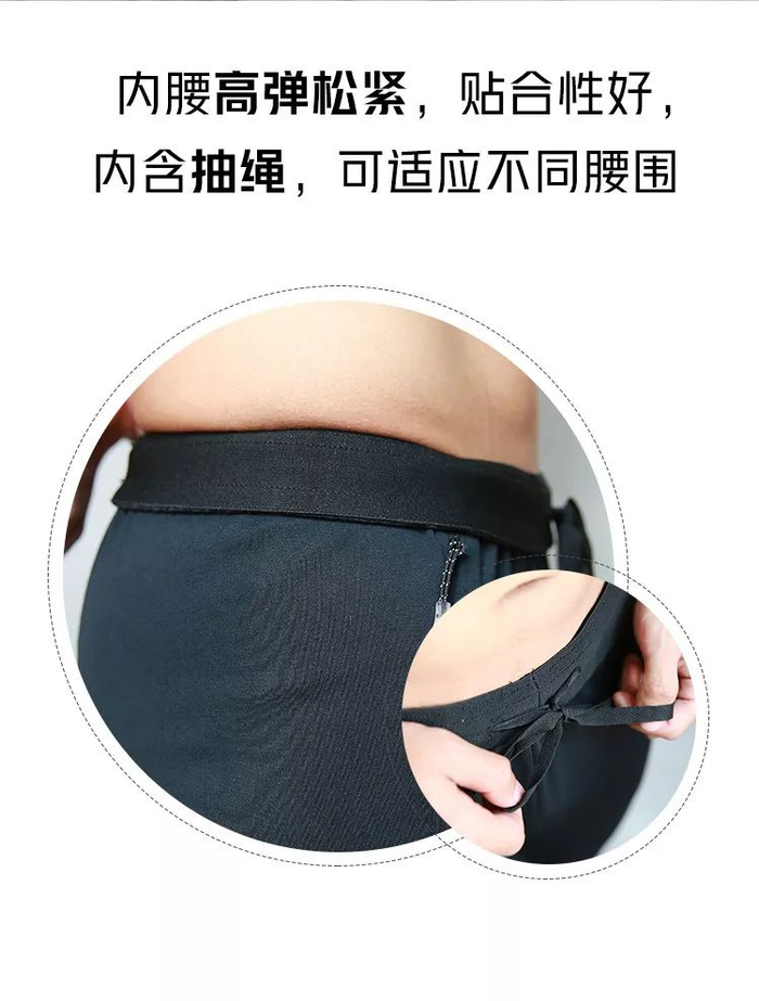 我们采用的腰带式腰头,与皮肤接触面积大,腰部受力更加柔和,不用担心勒得慌;内含抽绳,可以根据个人需求调节松紧,也能更好地固定手机。