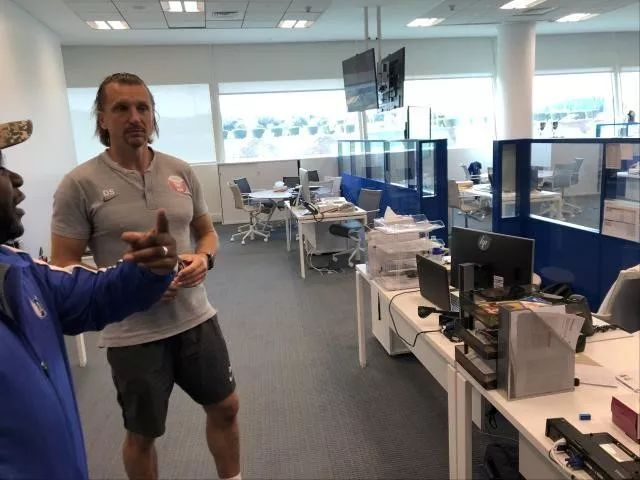 而笔者在参观过程中,也注意到每一个不同年龄段队伍的教练办公桌上,都有本队球员的基本情况。当然,除了主教练实施“一体化”、主要来自西班牙之外,各种助理教练或助手,则并不强求,可以是来自不同国家和地区,像专门给笔者介绍的这位U18助教就来自斯洛伐克。