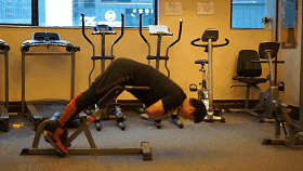 常见的有仰卧挺髋(臀桥),训练大腿后群和臀部力量。桥式可以演变成各形态的训练,例如:单腿仰卧挺髋、瑜伽球挺髋等,或者跑友可以将提踵训练加入到挺髋中,在单腿挺髋后加上提踵的提膝训练。