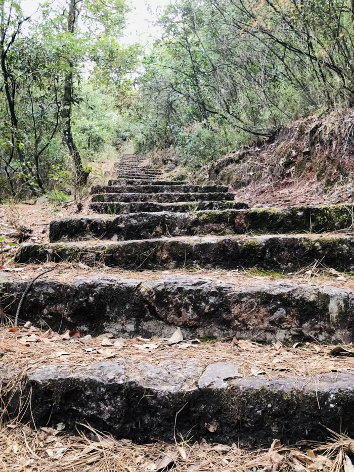 对面山爬台阶,拾级而上。