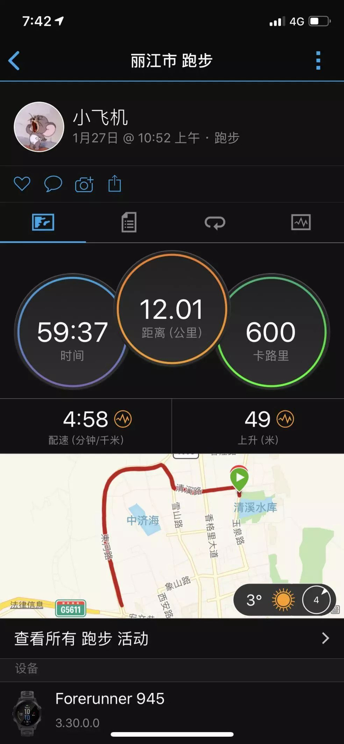 而后第一次跑步,40分钟适应跑,600的配速,让我怀疑我回到了一年前刚跑步的时候,这下不敢嘚瑟了,嘴巴必须张大呼吸,导致我一直在吐口水,丽江的紫外线也格外亲呢,晒着我每一寸皮肤,防晒霜抹到每一处露出来的地方,不想变的黑黢黢!
