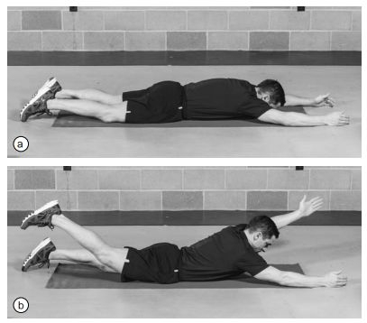 俯卧在地板上,双手置于耳旁地板上。胸腔下部与地板接触,同时慢慢地使用肘部或手将躯干从地面撑起,伸展背部。动作保持两次呼吸的时间长度,然后回到起始位置。动作重复若干次。