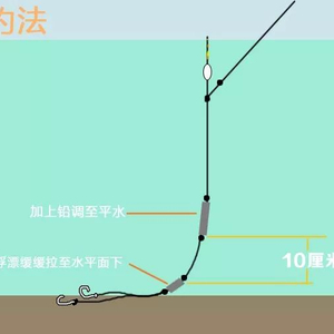 春季钓鱼如果遇到风力不大的时候,我们才有必要去研究如何调漂,也就是说当你用正常的台钓线组可以作钓时,调漂才有意义。而在调漂的时候,我们必须确保铅坠是到底的状态,所以我们只要找底的时候露出几目,就钓几目就可以,比如我们在重铅找底的时候,将浮漂露出来一目,此时铅坠是躺底的,我们接下来就调1目,然后再钓1目,那么此时作钓的时候,铅坠也是躺底的状态,而子线是完全躺底的,就会非常有效的减少走漂的情况,而线组的灵敏度并没有受到太大的影响。