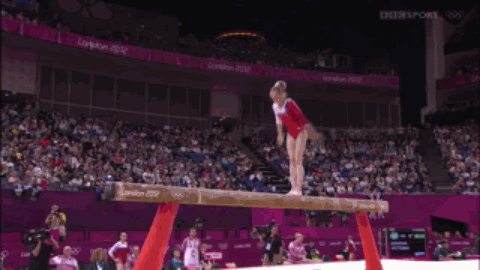 屈体前空翻动作同样常用在平衡木及自由体操中,在2008及2012周期我国的女子运动员平衡木的成套中几乎都会有一个助跑前屈的动作。但该动作十分容易被判为前团,因为屈体空翻动作要求膝角<135度,同时髋角<90度。屈体前空翻成纵木站立在平衡木中的难度为E组,在自由体操中,屈体前空翻两周为F组难度。我们也以俄罗斯男子运动员Dalaloyan的前屈两周给大家作为示范。