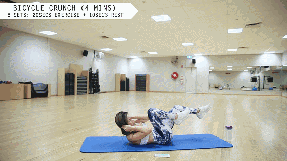 Tabata单次训练时间:运动20秒,休息10秒,每组30秒,做完8组,共4分钟。如身体素质允许可适当增加训练次数,每天进行1-3次训练,效果更佳!