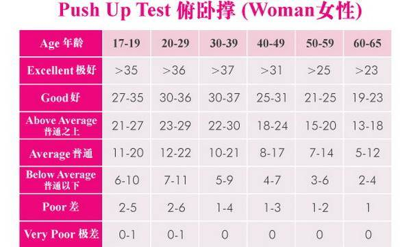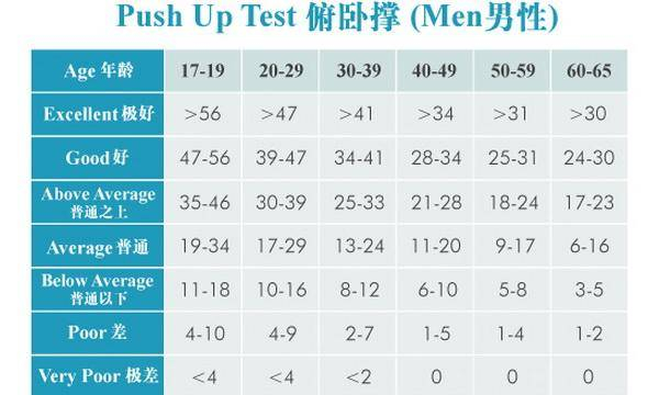 如果你的俯卧撑成绩低于上述标准,那你可就得要加强锻炼了。
