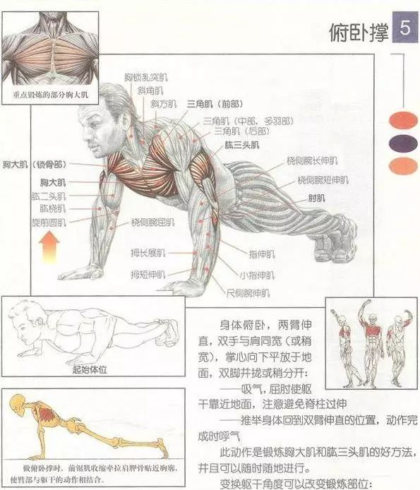 侧重:胸部,肩部,核心肌,手臂