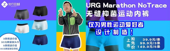 专为男跑者设计的URG Marathon NoTrace无缝抑菌运动内裤,开启现货发售!原价69.9元1条,限时特惠价99.9元3条,149.9元5条!买3条送价值30元限量版头巾,买5条赠送价值80元的限量版空顶帽,还包邮哦。