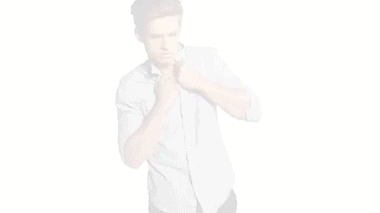 3、左手要最后才从衣服内拿出来,适当的弯折一下臂膀,能够在不经意间展现你的肱二头肌哦