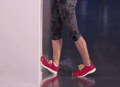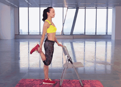 小腿拉伸:单腿抬起脚尖踩在墙面上,身体微微前倾尽量靠向墙面。脚尖踩得越高难度越大。