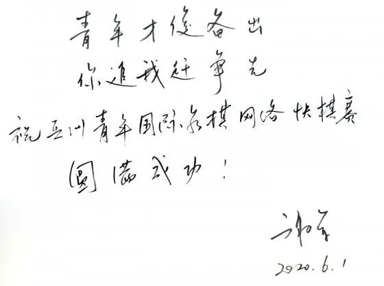谢军为比赛题写寄语