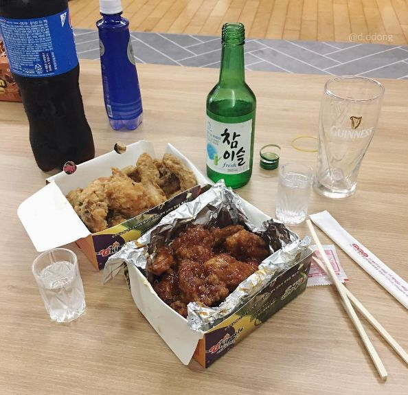 吃炸鸡配啤酒: