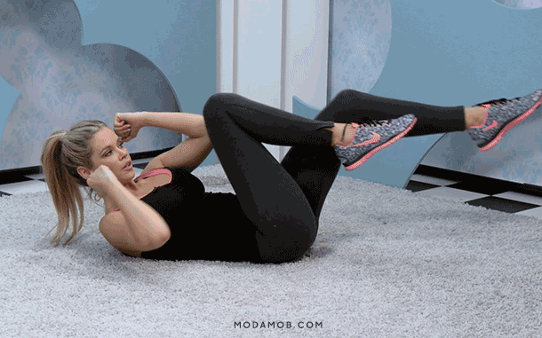 自行车卷腹X跪姿俯卧撑: