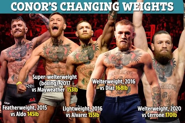 粉丝们相信麦格雷戈计划保持次中量级,他最近在Instagram上发布的消息表明他将保持强壮。一个拳迷说:“该死,很快就会成为170磅的冠军。”另一个说:“战斗机器。”有人评论说:“羽量级轻量级次中量级,三冠王。”另一位评论道:“这身材,足足有170磅,他减重越来越困难。”