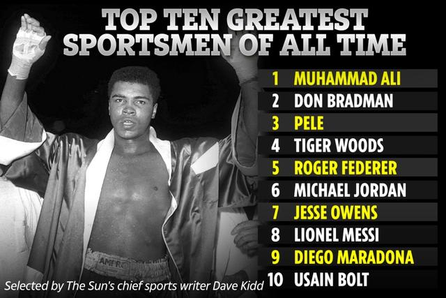 英媒评出史上最伟大体坛明星:拳王阿里第一乔丹第六,泰森未上榜