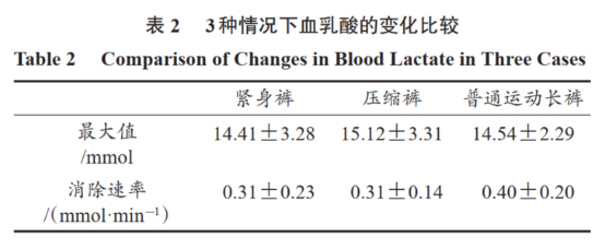 而穿着弹力裤和普通长裤,在运动后1分钟血乳酸就达到最大值(肌肉中产生的乳酸需要一定时间才能释放进入血液中)。