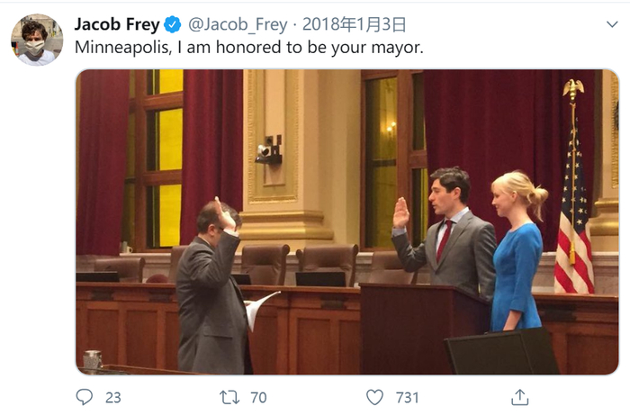 当地时间6月4日,弗洛伊德的首场追悼会在事发地明尼阿波利斯举行,市长Jacob Frey(雅各布·弗雷)单膝跪地扶棺痛哭的一幕,引起了国内外媒体的广泛关注,和美国社交媒体的热议。