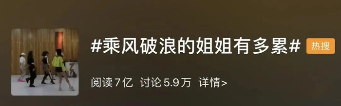 其中有一条热搜就是,“乘风破浪的姐姐有多累”,引发7亿网友围观。