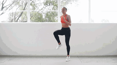 那么跑步的话,就可以类似于高抬腿,后踢腿,跳跃等和跑步相关的动作作为结尾。