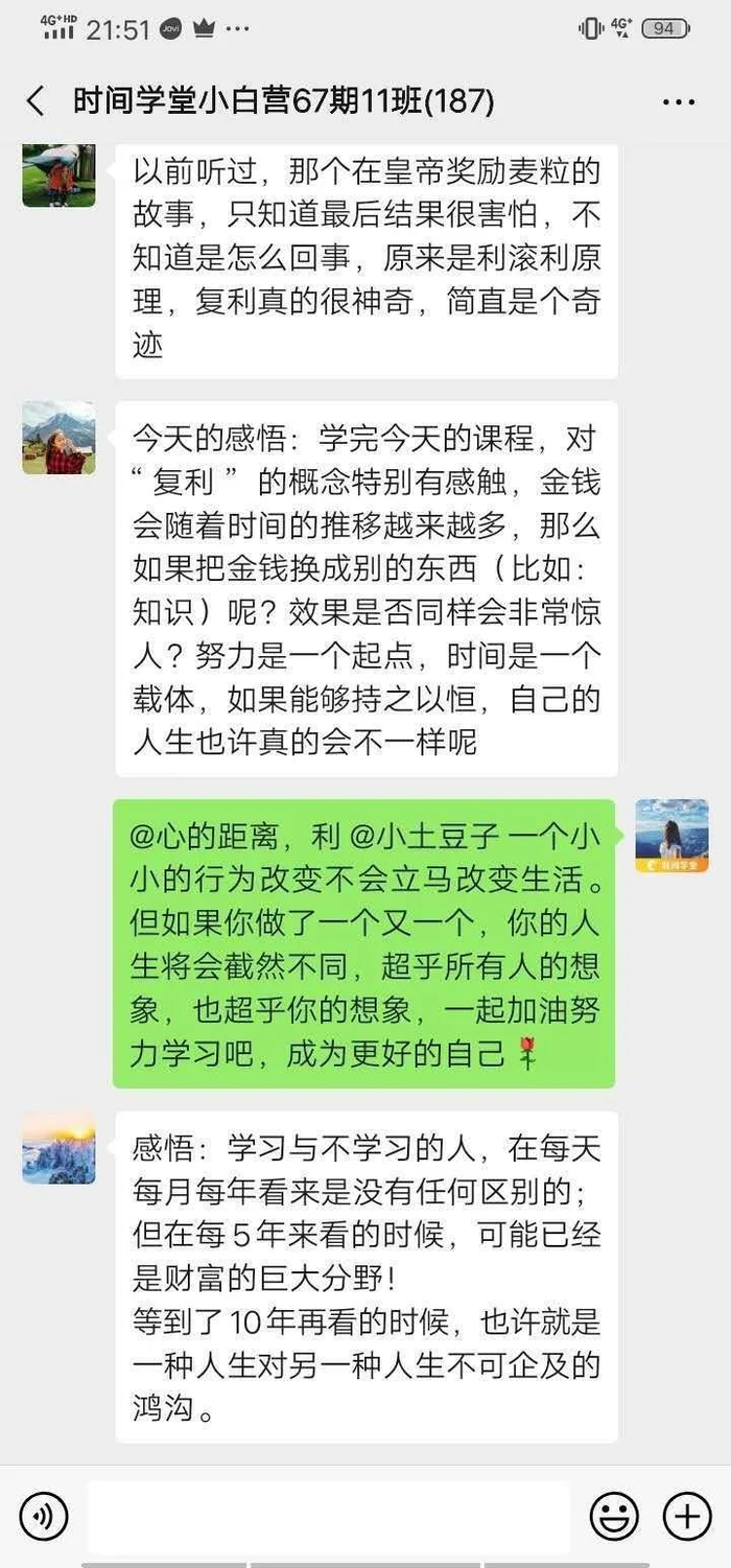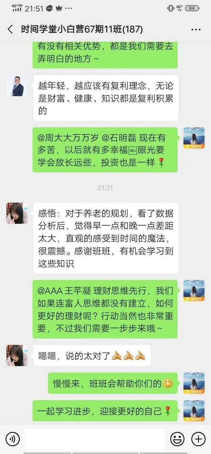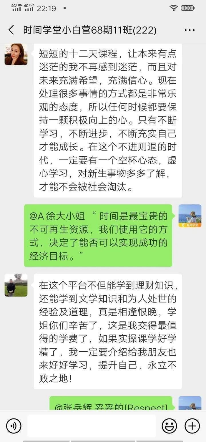 现在「时间学堂」的小白训练营已经开到第79期了,累计帮助50000多名用户。让很多在迷茫和困顿中挣扎的人,从零开始,迈出了理财第一步,为自己打开了一扇新的大门。
