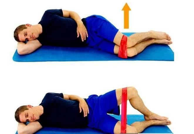 · 侧卧位侧抬腿训练:侧卧位,躯干挺直与地面垂直,将上方下肢脚尖朝下抬起到最大,保持3秒,然后缓慢放下,10次/组,共3组。