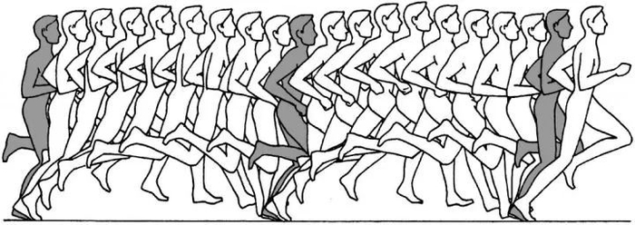 把下肢肌肉做为跑步前进的主要动力来源,这个观念是1960年代英国人戴森(Dyson)提出的一个模型,他把跑步分为三个阶段:支撑期、推进期、腾空恢复期。