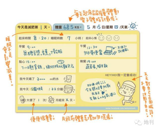 1.首先,准备一本记录体重的日记本,用来督促自己并找出体重增加的主因(食物、女生的生理时期、睡眠不足或者便秘等)