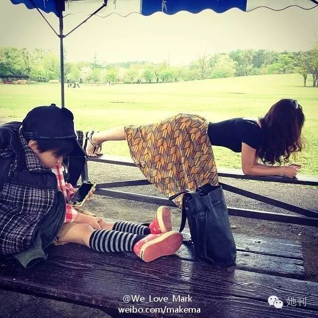 旁边的小朋友是她的小儿子,名叫马克,6岁多了。母子两个手牵手走在街上的时候,经常还会有男孩子过来跟这位“美少女”搭讪。