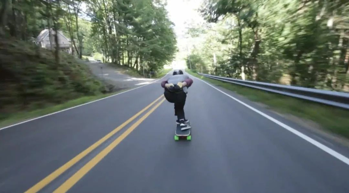 滑板下坡速滑的运动员使用的滑板比较长,类似于单板滑雪板加上了四个直径约为人手掌长度的越野轮子。主要用于野外的坡上进行向下的滑行。
