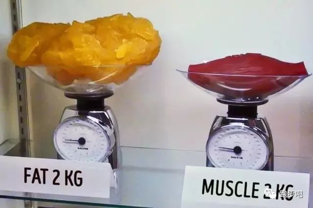 再来看肌肉和脂肪的对比,同样重量的肌肉和脂肪,它们的体积却完全不同,脂肪的体积约是肌肉的3倍大。
