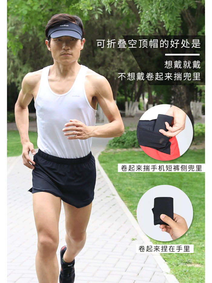 在研究空顶帽的过程中,一次,在奥森跑步,跑到一段树荫的地方,有个跑得挺快的小伙子,在擦肩而过的时候,把空顶帽的帽檐翻了上去。