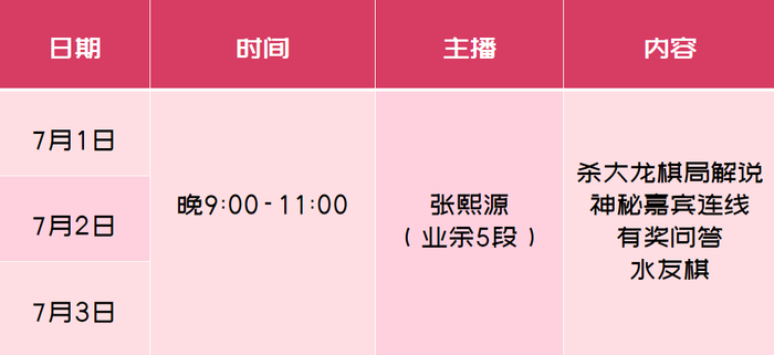 7月1日晚9:00城围联虎牙直播间,美女棋手张熙源5段携手新加坡富林建设队员崔宁二段,为大家带来新加坡富林建设VS贵阳天元这场比赛的棋局解说!此外,还会谈谈围棋初学者做死活题的方法与技巧,为刚入门的棋友们解惑,更有水友棋、有奖问答等你来参与喔