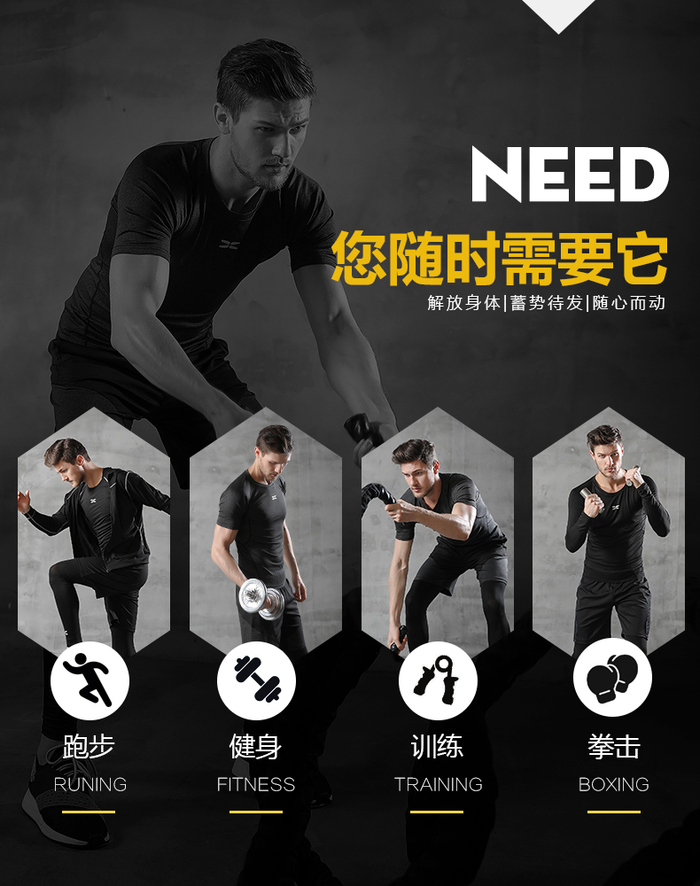 不管是平时跑步,健身,打球,拳击,以及各种户外运动,这一套黑曼巴运动套装,都可以满足你的需求,10倍的速干效率,高超的压缩性能,让运动更加随心所欲~!
