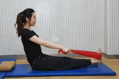训练要点:坐于瑜伽垫上,双下肢伸直,双脚同时完成踝关节屈曲,伸展,内翻和外展各方向运动,到运动终末端保持3秒;