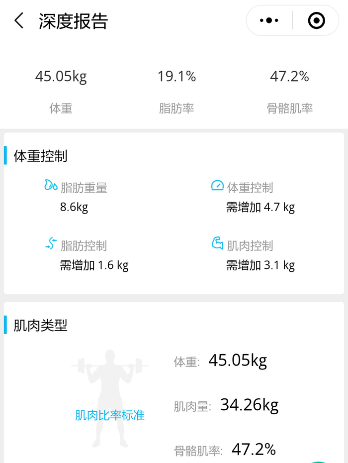 像体重、体脂、肌肉 三项记录,它是均支持按日/周/月/年为周期以变化曲线形式呈现,还可以自动生成身体报告与建议哦~很科学方便呢!