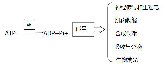 (注:三磷酸腺苷(ATP adenosine triphosphate)是由腺嘌呤、核糖和3个磷酸基团连接而成,水解时释放出能量较多,是生物体内最直接的能量来源。)