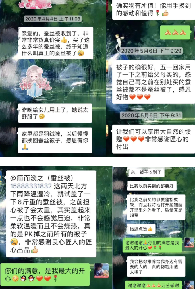 当然,好不好也不是我一个人说了算,朱姐做了这么多年的手工蚕丝被,收到的赞誉数不胜数。