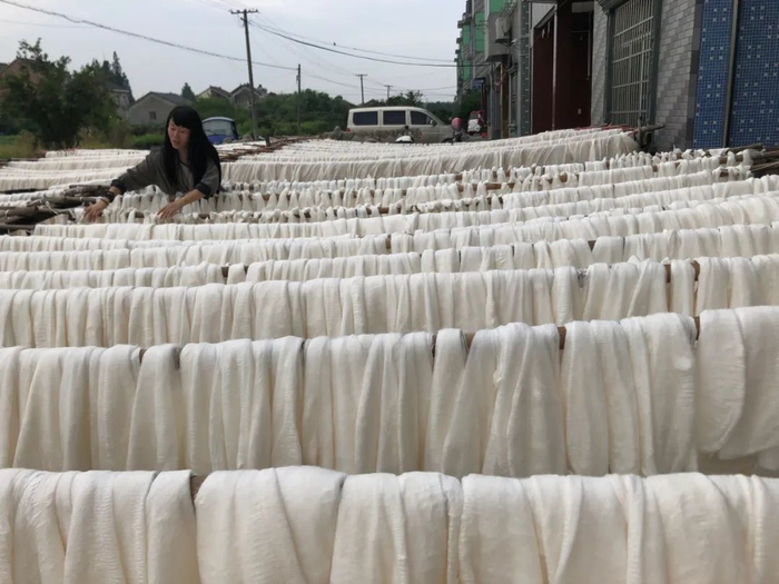 桐乡自古以来就是丝绸之乡,据说四五千年前,这里的先民们就已经掌握了种桑养蚕缫丝技术。所以在桐乡,基本上家家户户都养蚕,手工技法更是成为上一代人赖以谋生的必学手艺。但随着社会的发展,年轻人多数都走出家门,到大城市打拼,现在掌握100%纯手工蚕丝被制作技艺的年轻人越来越少。