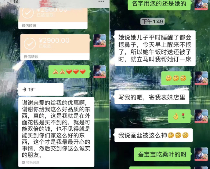 每年的开学季,都会有家长自发加她的微信,要给孩子做蚕丝被,稍加问询,就知道是上一年的家长介绍来的。