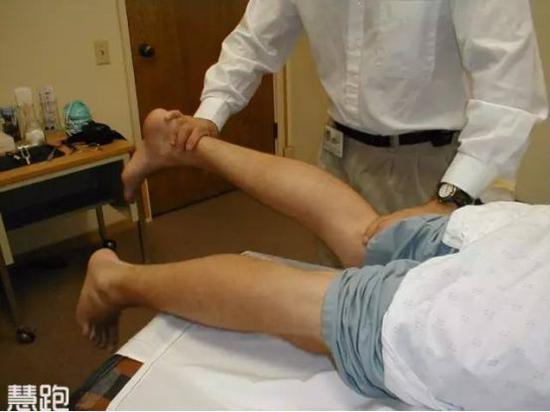 1。 如图所示,压住脚踝,患者做勾腿对抗动作,观察是否引发按压痛或抗阻痛;