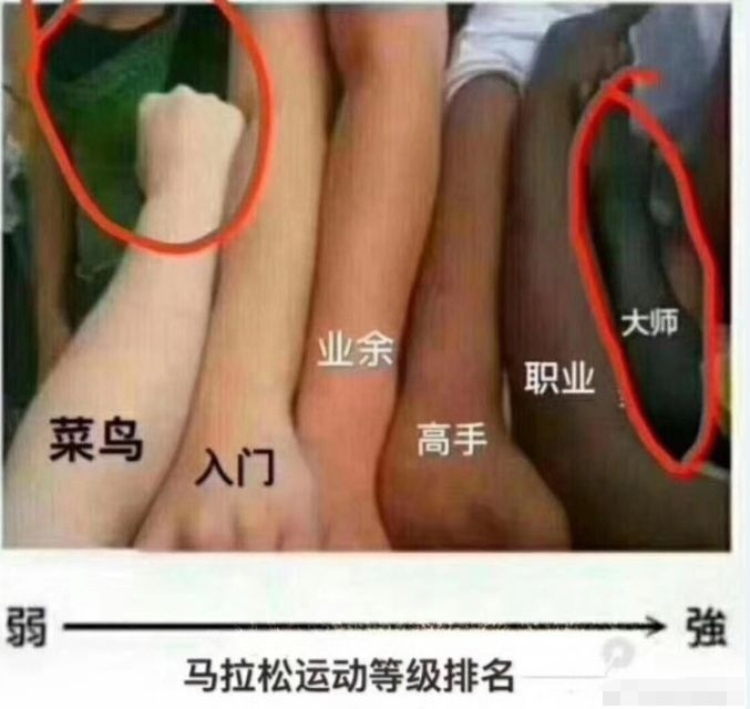 特别是现在夏天跑一个长距离,或者跑一场马拉松,身体绝对会黑一圈,大腿色差分明,后背多了个背心……