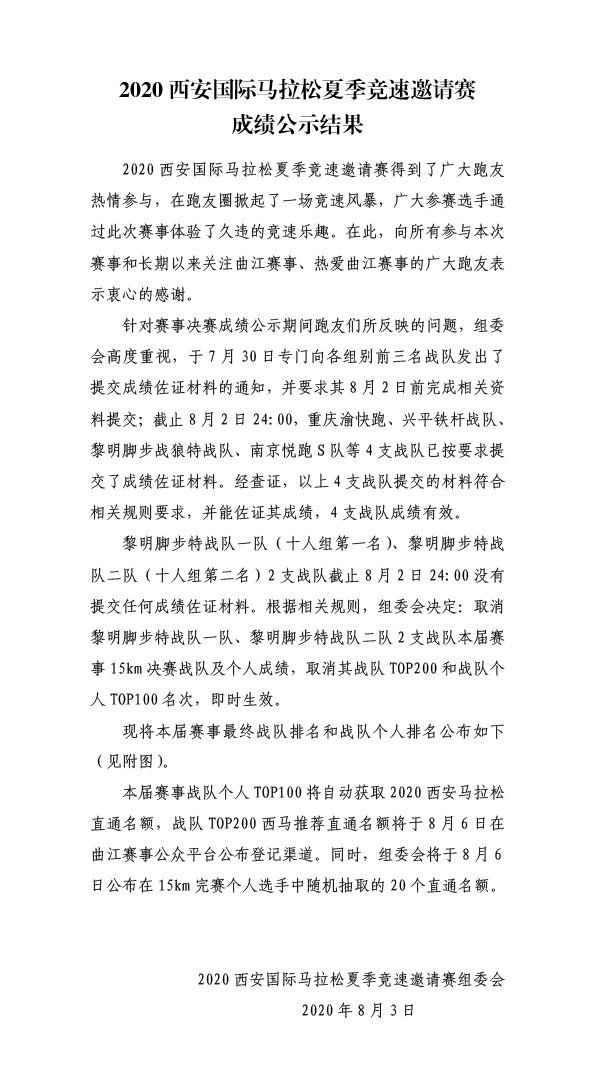 前两周,西安马拉松夏季竞速邀请赛上,某跑团在女子线上15公里个人赛排名成绩太优异,引发跑圈热议。后来因为无有效成绩证明材料,名次被取消。