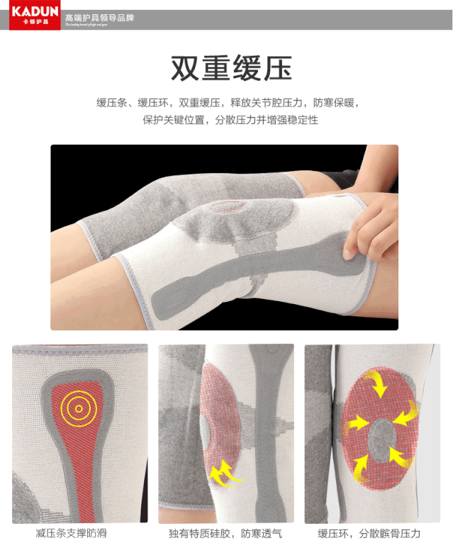 4.创新按摩硅胶圈,全方位柔软舒适硅胶圈,环状防护,减震保护整个膝盖。