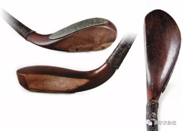 本期介绍的这支精致的菲尔普推杆(最下图),曾是一套9支未使用过的球杆中的一支,这套球杆作为奖品,由达尔林·普尔男爵授予两度获得英国业余锦标赛冠军和1893年英国公开赛亚军得主约翰·莱德乐。这套珍贵的球杆在1901年的格拉斯哥国际展中参与了展出。那届展会于5月开幕,为期六个月,为了消除拥有者的顾虑,这套球杆被安置在一个独立、防火、有电力照明且有专人日夜看守的地方。即使在1901年,这套休·菲尔普球杆也被认为是珍贵的参展作品。在1981年的英国伦敦苏富比拍卖会上,这套球杆被拆散了按支单独拍卖。1901年的格拉斯哥国际展授予这套球杆的参展证书,同时跟随最后一支菲尔普球杆一并拍出。约翰·莱德乐的这套菲尔普球杆被认为是1850年代,在菲尔普的助手罗伯特·福根的协助下打造的。(菲尔普过世后,福根成为其传人,并娶了菲尔普姐夫詹姆斯· 博威克的女儿为妻。罗伯特·福根品牌几乎成为19世纪末20世纪初球杆的标准,甚至成为了英国皇室品牌。)这支推杆从未被使用过,但杆头背面的铅已有些许偏移。这种现象屡见不鲜。这支菲尔普推杆杆头长五又三分之四英寸,宽二又八分之一英寸,而击球面深度仅有十六分之十五英寸。