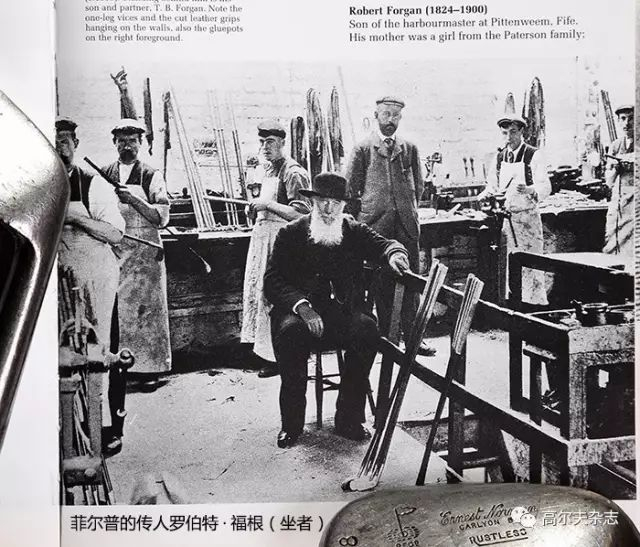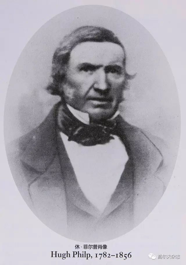 “休·菲尔普死于1856年4月6日,享年74岁。他未曾学徒过制作球杆,它的主业是木工,在圣安德鲁斯的阿盖尔街做生意,由于当时圣安德鲁斯没有球杆制作者,球手们只能找他修球杆。又过了一段时间,球手们转去了如今大饭店所在的球场找他,他在那里开设了商店,这大概发生在1820年到1825年间(1819年9月,休·菲尔普被任命为圣安德鲁斯球手协会的官方球杆制作者)。几年后,他买下了如今由老汤姆所有的地方,于1856年在那里逝世。没有人知道他在哪里出生,也不清楚他做了多久的球杆,传说菲尔普做了五十多年的球杆。他去世时,为他工作了23年的助手詹姆斯·威尔逊离开了他,在现在的航海酒店所在地开创了自己的品牌。另一个学徒安德鲁则选择继续留下。”