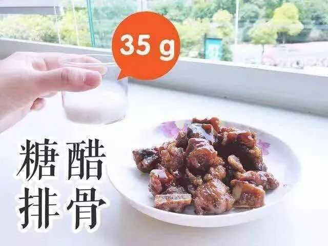 早上的咖啡、豆浆、八宝粥,女孩子大姨妈时喝的红糖水、蜜饯、辣条、巧克力等,只要你吃东西甚至是普通的菜肴,比如红烧肉,都在放糖,一盘糖醋排骨,最少也有35g糖。