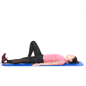 1.仰卧姿,双臂自然放于身体两侧,屈髋屈膝,脚尖勾起。