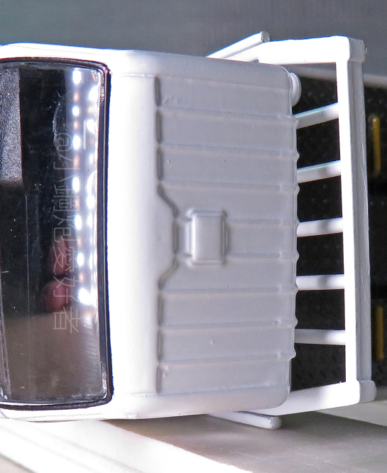 当然,我的不满也不代表这辆模型一无是处。我个人比较喜欢的是它随车附带的一套小配件,包括:四个雪糕筒、一对辅助轮、以及一个三角警示牌;拖车尾部还带有TLV花见台所没有的活动挂钩,这都让它比后者多出一层可玩性。