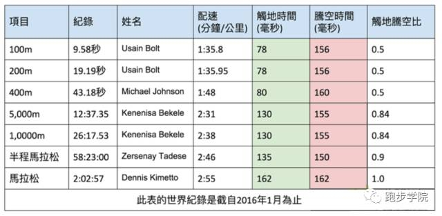 不过,很遗憾,研究数据表明,百米飞人和马拉松选手的腾空时间是一样一样的。他们最大的区别是触地时间,百米选手的触地时间只有马拉松选手触地时间的一半不到。